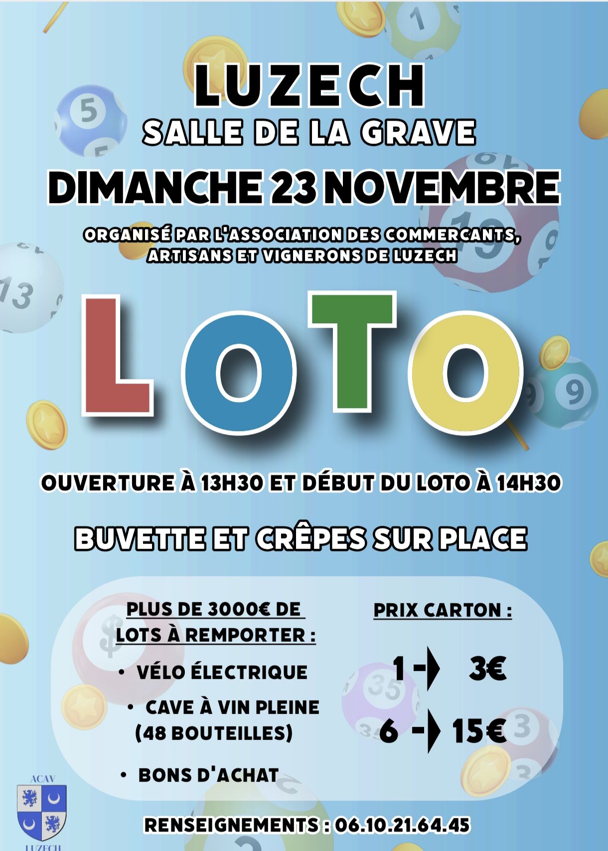 Premier loto organisé par l'association des commerçants : rendez-vous à la Salle La Grave, le dimanche 23 novembre à partir de 13h30