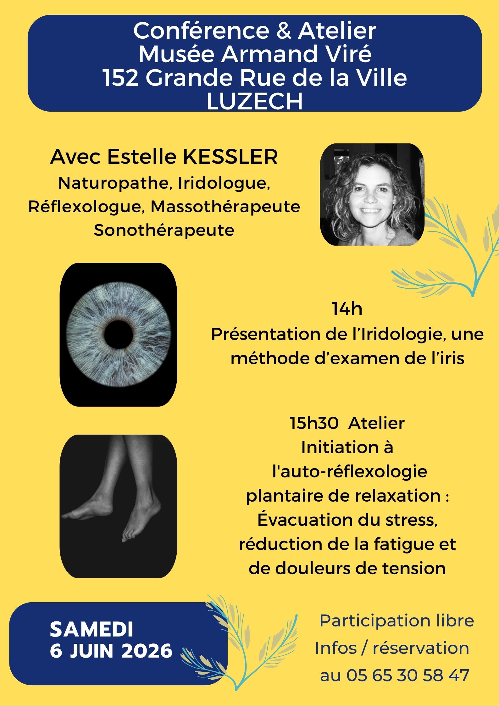L'association Lire à Luzech vous invite à rencontrer la naturopathe Estelle Kessler, le samedi 6 juin, pour 2 rendez-vous : L’iridologie (14h) est une méthode d’examen de l’iris. C’est un […]